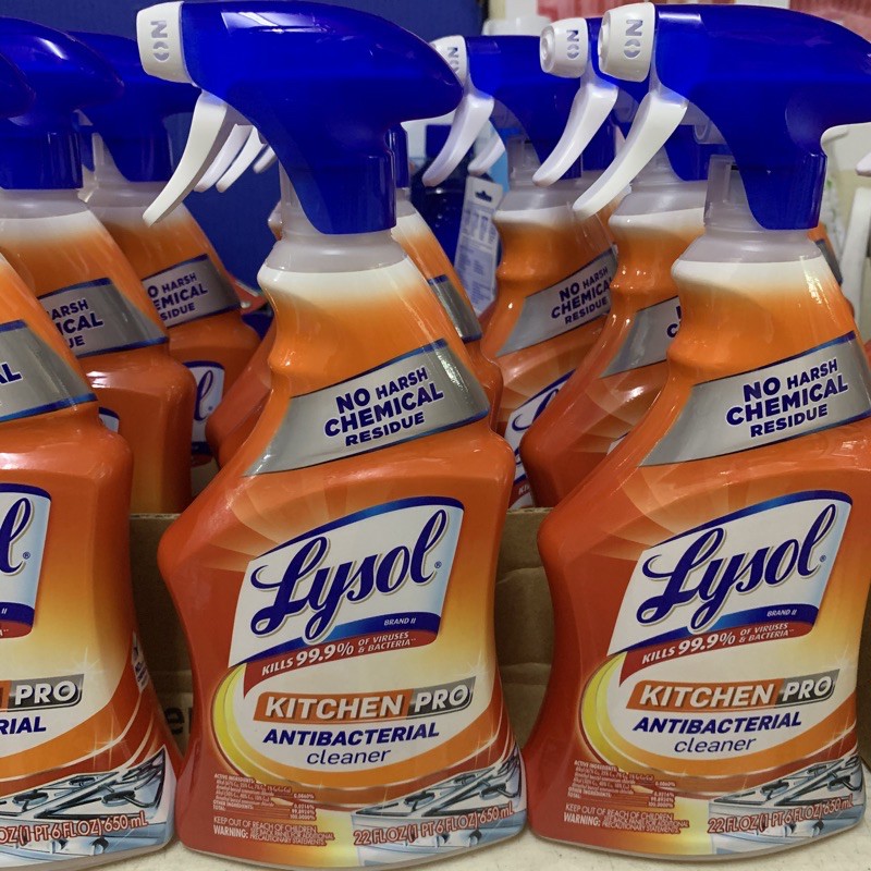 • no harsh chemical residue. Lysol kitchen pro antibacterial cleaner. I use it on stove, counter tops, and other touch surfaces. Lysol antibacterial kitchen cleaner pharmaceutical active ingredients containing related brand and generic drugs This cleaner is a versatile disinfectant that works on a wide range of hard.